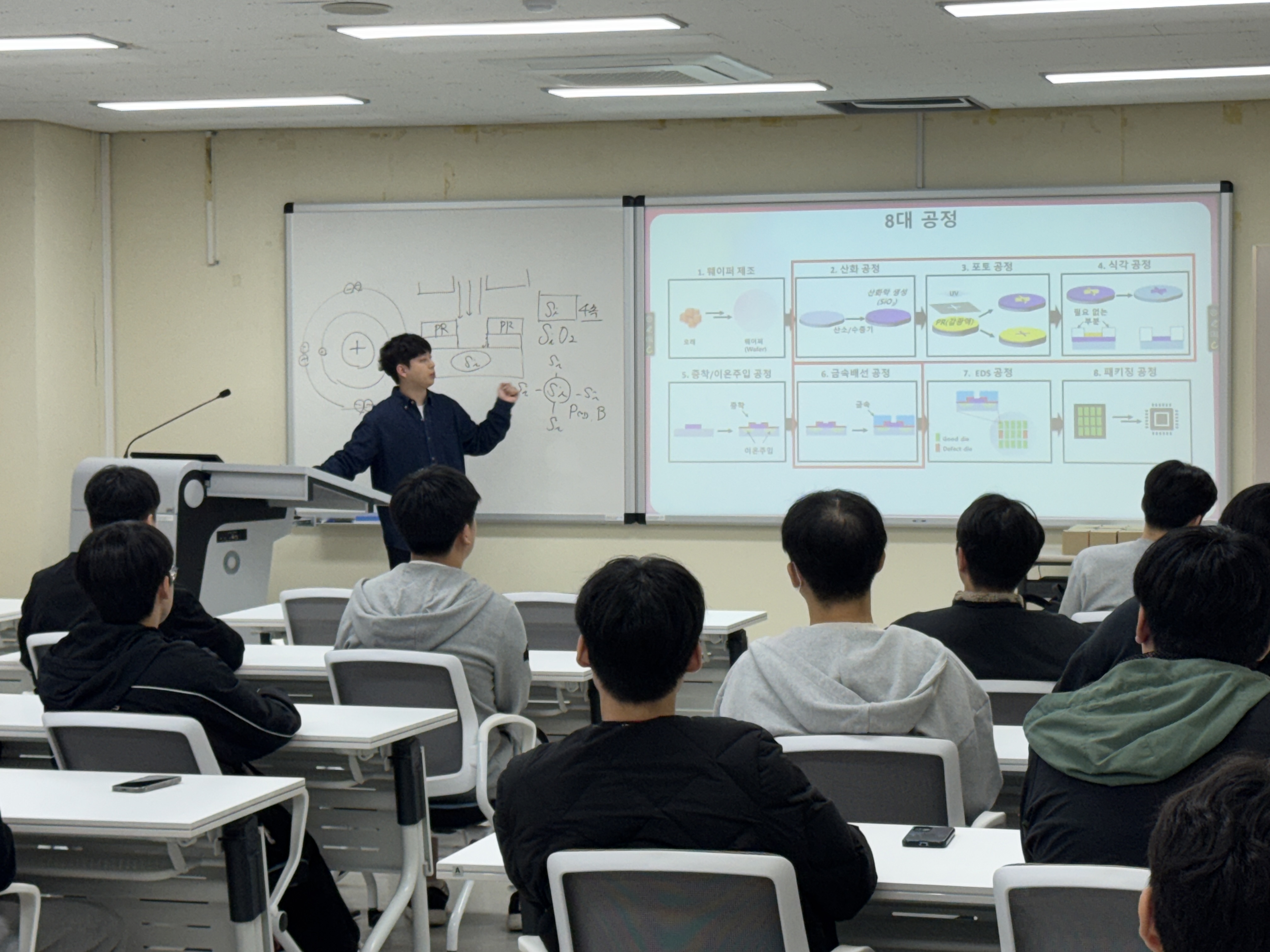 반도체 공정실을 실제로 보는 고등학교 학생들이 질문도 많이 하고 반응이 아주 뜨거웠답니다.