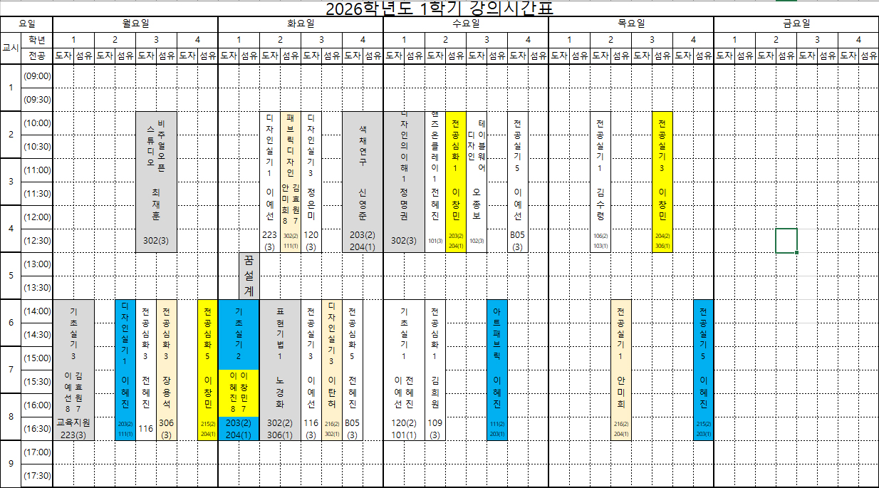 2026학년도 1학기 전공시간표 안내