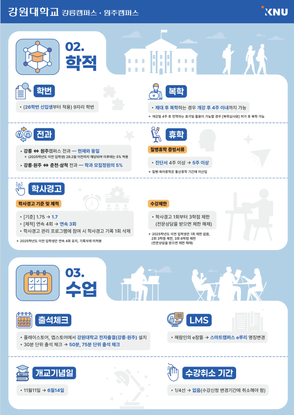 통합 강원대학교 교육과정 및 학사제도 안내 인포그래픽 배포