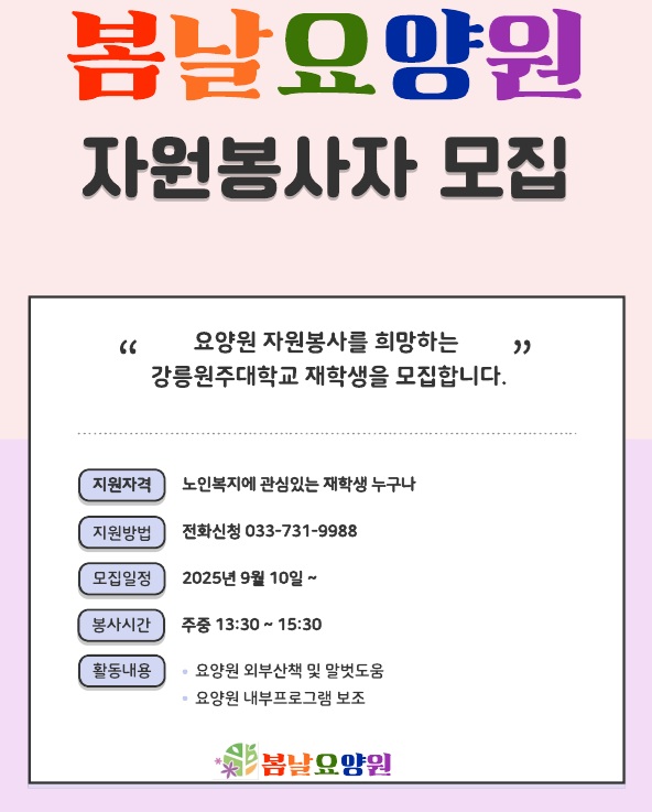 (상시) 봄날요양원 자원봉사자 모집